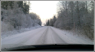 När jag åkte hem kom dimman över skogen och temperaturen sjönk ner mot flera minus grader och solen var på väg ner.